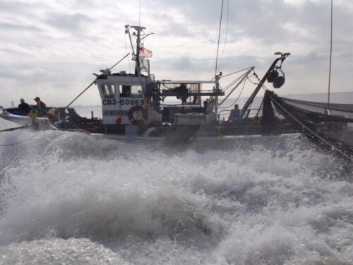 網船は航行時は船首を走りモヤ、船体後部を網で繋いで走ります。